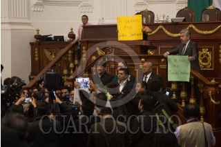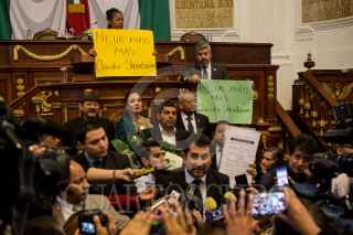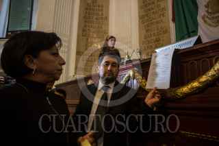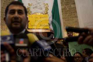 CIUDAD DE MÉXICO, 21NOVIEMBRE2017.- César Cavrioto, diputado de Morena en la Asamblea Legislativa del Distrito Federal, encabezó una protesta previo ala sesión en contra de la destitución de la anterior presidenta de la mesa directiva. Al mismo tiempo, Raúl Flores, diputado del PRD, encabezó una protesta en el recitno contra Claudia Sheinbaum y los diputados de Morena. FOTO: TERCERO DÍAZ /CUARTOSCURO.COM