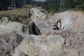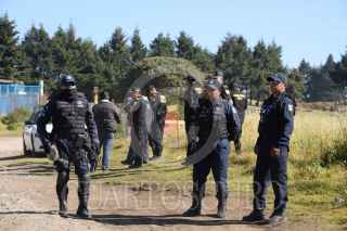 OCOYOACAC, ESTADO DE MÉXICO, 21NOVIEMBRE2017.- Elementos de la Policía Federal y de la SSEM resguardaron la obra del Tren Interurbano, en su tramo de los bienes comunales de Tepexoyuca, la cual había sido parada por comuneros de la zona exigiendo el pago correspondiente por las tierras ocupadas. FOTO: ARTEMIO GUERRA BAZ /CUARTOSCURO.COM