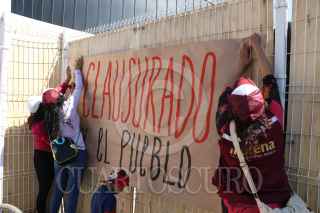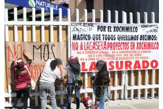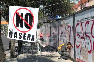 CIUDAD DE MÉXICO, 22NOVIEMBRE2017.- Integrantes de Morena en la delegaciones Xochimilco clausuraron simbólicamente una gasera que se ubica sobre la avenida Prolongación División del Norte a un costado del CETRAM Francisco Goitia, los inconformes exigieron la clausura definitiva de la gasera ya que se ubica cerca de dos escuelas. FOTO: SAÚL LÓPEZ /CUARTOSCURO.COM