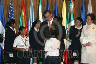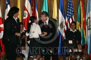MEXICO, D.F. 29OCTUBRE2004.- El presidente Vicente Fox, saluda a los niños participantes del Congreso Panamericano del Niño, durante la clausura del mismo. FOTO: Nelly Salas/CUARTOSCURO.COM