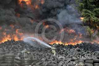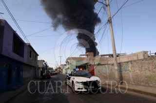ZINACANTEPEC, ESTADO DE MÉXICO, 22NOVIEMBRE2017.- Un incendio se registró en un predio ubicado en el barrio del Calvario, en donde se tenían almacenadas llantas. Bomberos de los municipios vecinos como Metepec, Toluca y Almoloya de Juárez apoyaron en el siniestro, ante la magnitud del incendio, quienes trabajaron por varias horas para sofocarlo. FOTO: ARTEMIO GUERRA BAZ /CUARTOSCURO.COM