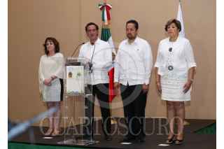 CANCÚN, QUINTANA ROO, 22NOVIEMBRE2017.- Alberto Elías Beltrán, subprocurador Jurídico y de Asuntos Internacionales de la PGR, e Israel Lira Salas, titular de la Subprocuraduría Especializada en Investigación de Delincuencia Organizada (SEIDO), ofrecieron una conferencia de prensa sobre el caso de las cajas de First National Security (FNS). FOTO: CUARTOSCURO.COM