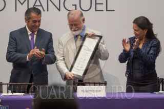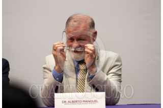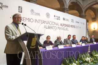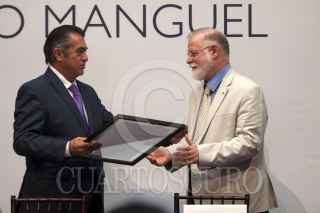 MONTERREY, NUEVO LEÓN, 24NOVIEMBRE2017.- El escritor y novelista argentino-canadiense Alberto Manguel recibió el Premio Internacional Alfonso Reyes 2017 en manos de autoridades académicas y estatales. El galardón es otrogado desde 1973 por Conaculta, IMBA, Contarte y Universidades de Nuevo León por distinción y trayectoria literaria. FOTO: GABRIELA PÉREZ MONTIEL /CUARTOSCURO.COM