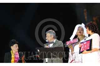 MEXICO D.F 30 OCTUBRE 2004.- La cantante africana Oumou Sangare saluda a la cantante Eugenia Leòn durante su presentación en el zócalo capitalino.FOTO: Eunice Adorno/CUARTOSCURO.COM