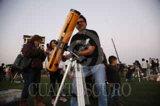 PUEBLA, PUEBLA, 25NOVIEMBRE2017.- Familias y curiosos se dieron cita en el jardín del Arte en Puebla, para participar de las actividades de la noche de estrellas y observar la bóveda celeste. FOTO: HILDA RÍOS /CUARTOSCURO.COM