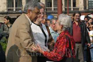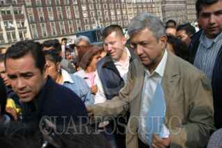 MEXICO, D.F. 31OCTUBRE2004.- Andrés Manuel López Obrador, jefe de gobierno de la ciudad de México, durante su intervención en la entrega de prestamos para remodelación de viviendas en la plancha del zócalo capitalino. FOTO: Nelly Salas/CUARTOSCURO.COM