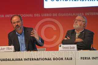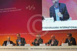 GUADALAJARA, JALISCO, 25NOVIEMBRE2017.-Jorge Volpi, Juan Villoro, Carlos Revés y Ricardo Cayuela participaron el homenaje a Fernando Savater, esto en el marco de la edición 31 de la Feria Internacional del Libro de Guadalajara que se lleva a cabo en la expo. FOTO: FERNANDO CARRANZA GARCIA / CUARTOSCURO.COM