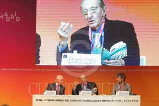 GUADALAJARA, JALISCO, 26NOVIEMBRE2017.- Presencia de Eduardo Lizalde ganador del Premio Internacional Carlos Fuentes, esto en el Marco de la edición 31 de la Feria Internacional del Libro de Guadalajara que se lleva a cabo en las instalaciones de la Expo. FOTO: FERNANDO CARRANZA GARCIA / CUARTOSCURO.COM