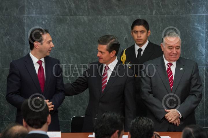 CIUDAD DE MÉXICO, 27NOVIEMBRE2017.- Omar Fayad Meneses, gobernador de Hidalgo, y Enrique Peña Nieto, Presidente de México, en la cual Grupo Modelo anunció la expansión de su planta productiva en Apan, Hidalgo, con una inversión de 800 millones de dólares, en la residencia oficial de Los Pinos. FOTO: MOISÉS PABLO /CUARTOSCURO.COM