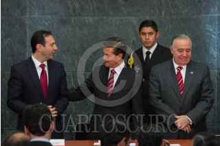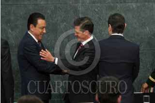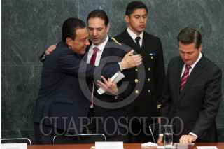 CIUDAD DE MÉXICO, 27NOVIEMBRE2017.- Omar Fayad Meneses, gobernador de Hidalgo, y Enrique Peña Nieto, Presidente de México, en la cual Grupo Modelo anunció la expansión de su planta productiva en Apan, Hidalgo, con una inversión de 800 millones de dólares, en la residencia oficial de Los Pinos. FOTO: MOISÉS PABLO /CUARTOSCURO.COM