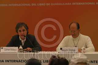 GUADALAJARA, JALISCO, 27NOVIEMBRE2017.-El Padre Alejandro Solalinde presento su libro “Los Migrantes del Sur” en el que participaron Carmen Aristegui y Juan Guillermo López, esto en el marco de la edición 31 de la Feria Internacional del Libro de Guadalajara que se lleva a cabo en las instalaciones de la Expo. FOTO: FERNANDO CARRANZA GARCIA / CUARTOSCURO.COM