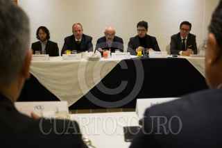 CIUDAD DE MÉXICO, 28NOVIEMBRE2017.- PERIODISTAS SE REUNEN CON RELATORES DE LA ONU Y LA OEA. Edison Lanza, relator especial sobre la libertad de expresión de la CIDH, David Kaye, relator especial de la ONU sobre la libertad de expresión y Jan Jarab, representante ONU-DH México, acompañados por Luis Raúl González Pérez, presidente Nacional de la Comisión de Derechos Humanos se reunieron esta mañana con periodistas y directores de medios para escuchar las sugerencias y propuestas de la violencia contra periodistas que daña la libertad de expresión y el alto índice de periodistas asesinados en nuestro país, con el fin de encontrar alternativas para mejorar las condiciones en el ejercicio del oficio. En la imagen, Jan Jarab y el Luis González conversan con periodistas, Adrián López Ortiz, José Luis Sierra y Héctor Zamarrón, entre otros. PEDRO VALTIERRA /CUARTOSCURO.COM