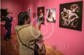 CIUDAD DE MÉXICO, 28NOVIEMBRE2017.- El artista de performance Guillermo Gómez-Peña, presentó su exposición “Mexican (IN) documentado” en el Museo de Arte Moderno, la cual exhibe más de 150 obras, entre las cuales se encuentran videos, vestuarios, fotografías, documentos, textos y personas caracterizadas que de acuerdo al artista muestran y representan el arte del “chicano”. En la imagen Guillermo Gómez-Peña, posó junto a su equipo de perfomances para los medios de comunicación. FOTO: MARIO JASSO /CUARTOSCURO.COM
