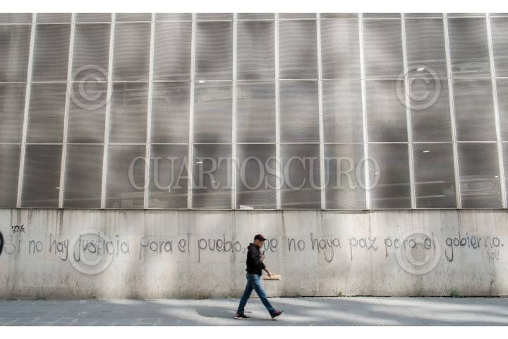 CIUDAD DE MÉXICO, 28NOVIEMBRE2017.- Dos jóvenes platicando frente a un mural del Santo, en la estación Guerrero, de la línea 3 del STC Metro. La exhibición “Leyendas de la Lucha Libre” presenta a los luchadores mas reconocidos de México en la ultima mitad de siglo, plasmados en los dos mil metros cuadrados que abarca la estación. FOTO: JESÚS VERDUGO /CUARTOSCURO.COM