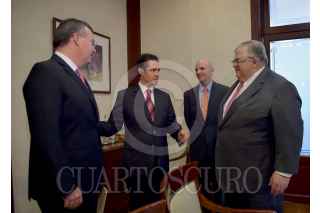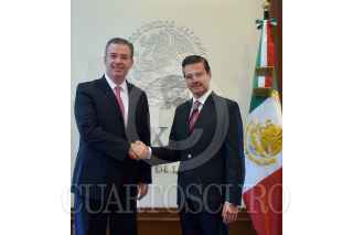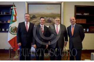 CIUDAD DE MÉXICO, 28NOVIEMBRE2017.- En el acto en el que el Presidente Enrique Peña Nieto designó a Alejandro Díaz de León Carrillo como Gobernador del Banco de México, estuvieron presentes el doctor Agustín Carstens Carstens y el Secretario de Hacienda y Crédito Público, José Antonio González Anaya. En la imagen lo acompañan Agustín Carstens, ex gobernador de Banxico, y José Antonio González Anaya, secretario de Hacienda. FOTO: PRESIDENCIA /CUARTOSCURO.COM