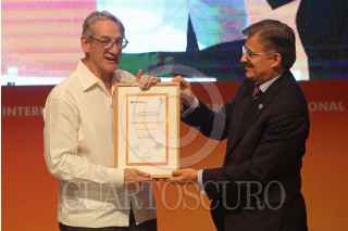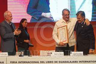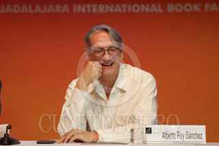 GUADALAJARA, JALISCO, 28NOVIEMBRE2017.-El escritor Alberto Ruy-Sánchez recibió el Homenaje al Bibliófilo, esto en el marco de la edición 31 de la Feria Internacional del Libro de Guadalajara que se lleva a cabo en las instalaciones de la Expo. FOTO: FERNANDO CARRANZA GARCIA / CUARTOSCURO.COM