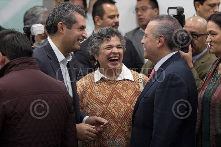 CIUDAD DE MÉXICO, 29NOVIEMBRE2017.- Emilio Gamboa Patrón, dirigente de senadores del PRI; Claudia Ruiz Massieu, secretaria general del Partido Revolucionario Institucional (PRI); Enrique Ochoa Reza, presidente del partido; el senador Ernesto Gandara Camou, y César Camacho Quiroz, dirigente de diputados del partido, durante la reunión de la mesa de la Comisión Política Permanente para dar a conocer la aprobación de documentos y postulación de José Antonio Meade Kuribreña para ser electo candidato a la presidencia en 2018 por el tricolor. FOTO: GALO CAÑAS /CUARTOSCURO.COM