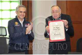 CIUDAD DE MÉXICO, 30NOVIEMBRE2017.- El Gobierno de la Ciudad de México reconoció a Miguel Concha Malo como ciudadano distinguido, por su labor durante más de 30 años en la defensa de los derechos humanos, en el ámbito académico, social y en la memoria escrita. La entrega del reconocimiento la presidio Miguel Ángel Mancera Espinosa, Jefe de Gobierno de la Ciudad de México. FOTO: GOBIERNO DE LA CIUDAD DE MÉXICO /CUARTOSCURO.COM