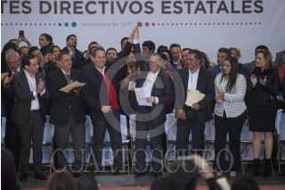 CIUDAD DE MÉXICO, 30NOVIEMBRE2017.- José Antonio Meade Kuribreña durante su encuentro con directivos estatales del Partido Revolucionario Institucional, donde recibió por parte de todos los líderes cartas de aprobación para su postulación como candidato presidencial del Partido. Asimismo, Eruviel Ávila, presidente del PRI en la Ciudad de México, le entregó su documento de aprobación y apoyo al pre candidato. FOTO: TERCERO DÍAZ /CUARTOSCURO.COM
