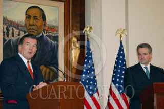 México, D.F., 09NOVIEMBRE2004.- Tom Ridge, secretario del Interior de los Estados Unidos, ofreció una conferencia de prensa en la Secretaría de Gobernación. FOTO: Ignacio González/CUARTOSCURO.COM