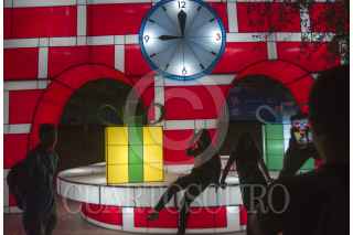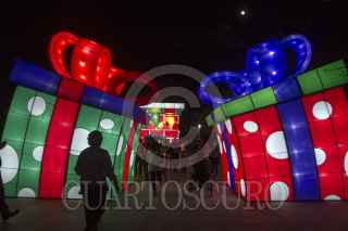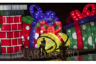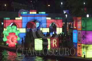 MONTERREY, NUEVO LEÓN, 01DICIEMBRE2017.- Se llevó a cabo el encendido de "Luztopía", más de 200 estructuras iluminadas con motivos navideños sobre el Paseo Santa Lucía con tres kilómetros de recorrido; una de las más grandes de América Latina. Las figuras fueron diseñadas por mexicanos y estará exhibida hasta el 6 de enero. FOTO: GABRIELA PÉREZ MONTIEL /CUARTOSCURO.COM