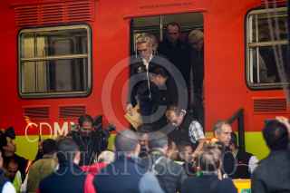 CIUDAD DE MÉXICO, 02DICIEMBRE2017.- Miguel Ángel Mancera Espinosa, jefe de gobierno, y Jorge Gaviño, titular del Transporte Colectivo Metro, encabezaron la entrega de 9 trenes restaurados para el metro de la capital. FOTO: TERCERO DÍAZ /CUARTOSCURO.COM