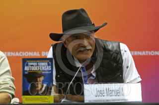 GUADALAJARA, JALISCO, 02DICIEMBRE2017.- El Dr. José Manuel Mireles Valverde, ofreció una conferencia de prensa en donde hablo sobre la problemática que vivió en torno a las autodefensas, temática principal que aborda su libro mismo que presenta esta tarde en el marco de la edición 31 de la Feria Internacional del Libro de Guadalajara (FIL), que se lleva a cabo en las instalaciones de la Expo y en donde el invitado de Honor es Madrid. FOTO: FERNANDO CARRANZA GARCIA / CUARTOSCURO.COM