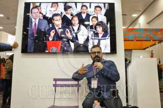 GUADALAJARA, JALISCO, 03DICIEMBRE2017.- Isaac Esquivel Fotoperiodista de la Agencia Cuartoscuro y próximamente galardonado con el Premio Nacional de Periodismo 2016, sostuvo una charla denominada “La Fotografía durante el Sismo del 19S de 2017”, con asistentes a la Feria y en especifico al Stand de la Ciudad de México CDMX, en el marco de la edición 31 de la Feria Internacional del Libro de Guadalajara (FIL), que se lleva a cabo en las instalaciones de la Expo y en donde el invitado de Honor es Madrid. FOTO: CUARTOSCURO.COM