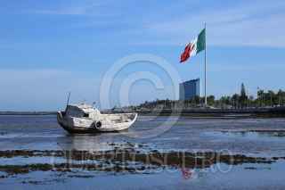 CAMPECHE, CAMPECHE, 04DICIEMBRE2017.- Debido a la última luna llena de este el malecón amaneció está mañana con una notable marea baja. Esto imposibilitó a los pescadores ribereños salir a la mar pues sus embarcaciones quedaron completamente encalladas en el lodo. FOTO: MARTIN ZETINA /CUARTOSCURO.COM