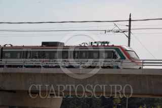 TOLUCA, ESTADO DE MÉXICO, 04DICIEMBRE2017.- Uno de los vagones del Tren Interurbano México-Toluca fue vandalizado durante la madrugada de este día, colocando graffitis en ambos costados, los trenes permanecen parados en el estación de Zinacantepec. FOTO: ARTEMIO GUERRA BAZ /CUARTOSCURO.COM