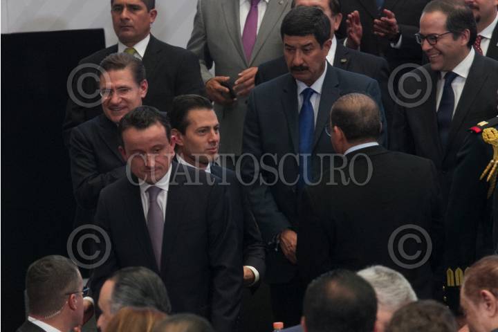 CIUDAD DE MÉXICO, 04DICIEMBRE2017.- Javier Corral, gobernador de Chihuahua, y Enrique Peña Nieto, Presidente de México, conversan al finalizar la Asamblea General del Infonavit, en su sede general. FOTO: MOISÉS PABLO /CUARTOSCURO.COM