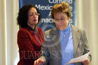 MEXICO, D.F. 22 NOVIEMBRE 2004.- Guadalupe González, catedrática-investigadora, y Olga Pellicer, investigadora del ITAM, durante la presentación del primer documento de análisis y perspectiva en política exterior publicado por el COLMEX, realizada en el Club de Industriales. FOTO: Sandra Perdomo/CUARTOSCURO.COM