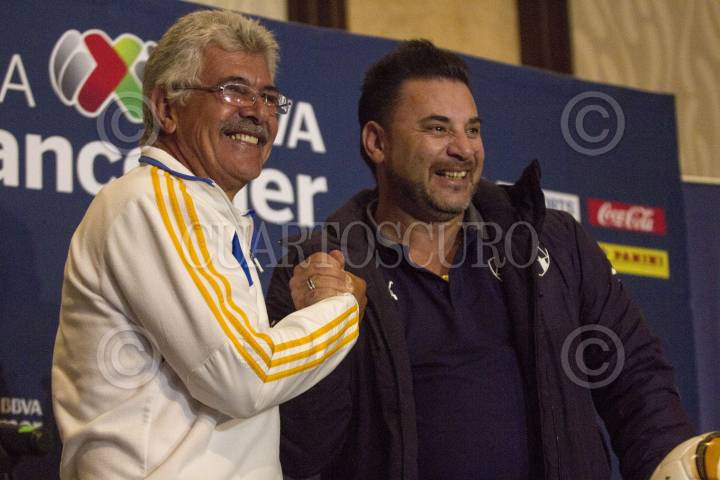 MONTERREY, NUEVO LEÓN, 06DICIEMBRE2017.- Los directores técnicos de los equipos de la final de la Liga MX, Apertura 2017; Ricardo Ferreti de Tigres y Antonio Mohamed de Monterrey ofrecen una rueda de prensa previo al partido de ida en el estadio Universitario. En la sala de prensa, presentaron la copa. FOTO: GABRIELA PÉREZ MONTIEL /CUARTOSCURO.COM