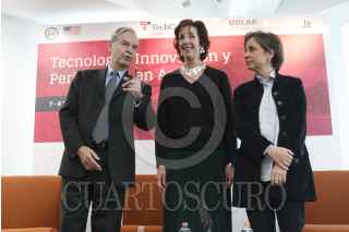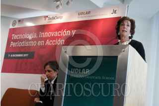 CIUDAD DE MÉXICO, 07DICIEMBRE2017.- La periodista Carmen Aristegui; la embajadora estadounidense Roberta Jacobson, y Luis Ernesto Derbez, rector de la Universidad de las Américas Puebla, inauguraron el encuentro "TechCamp: Tecnología, Innovación y Periodismo en Acción", un taller en que participaron comuniadores de México y Centroamérica. FOTO: MOISÉS PABLO /CUARTOSCURO.COM