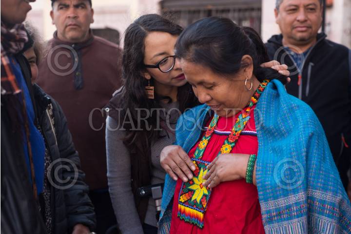 ZACATECAS, ZACATECAS, 7DICIEMBRE2017.- María de Jesús Patricio Martínez, "Marichuy", vocera del Concejo Indígena de Gobierno y aspirante a candidata a la Pesidencia de la República, se toma una fotografía con simpatizantes después de haber concluído un encuentro en la Plazuela Goitia en el centro de la ciudad. Con música y discursos invitaron a los asistentes a firmar en la aplicación del INE para que Marichuy pueda aparecer en las boletas electorales de las elecciones del 2018. FOTO: MISAEL VALTIERRA / CUARTOSCURO.COM