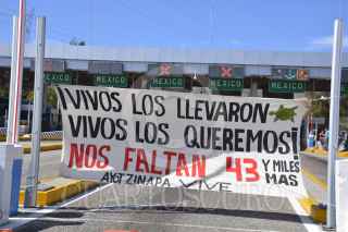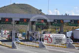 CHILPANCINGO, GUERRERO, 07DICIEMBRE2017.- Estudiantes de la normal rural Raúl Isidro Burgos de Ayotzinapa tomaron la caseta de cobro de peaje de Palo Blanco en la Autopista del Sol. FOTO: JOSÉ I. HERNÁNDEZ /CUARTOSCURO.COM
