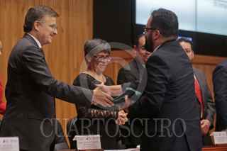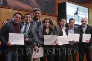 GUADALAJARA, JALISCO, 08DICIEMBRE2017.- Fotografía general de los galardonados del Premio Nacional de Periodismo 2016, esto durante la XVl Entrega Ciudadana que se llevo a cabo en el Paraninfo Enrique Díaz de León de la Universidad de Guadalajara (U. De G.). FOTO: FERNANDO CARRANZA GARCIA / CUARTOSCURO.COM