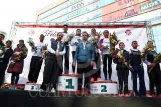 CIUDAD DE MÉXICO, 10DICIEMBRE2017.- Se llevó a cabo la quinta edición de la Carrera Navideña IMSS de 5 y 10 kilómetros y la caminata de 3 en paseo de la Reforma fuera de las instalaciones centrales del Instituto Mexicano de seguridad popular (IMSS). La premiación a los ganadoras de las distintas etapas de la carrera la presidió el Director general, Tuffic Miguel Ortega. FOTO: ANDREA MURCIA /CURTOSCURO.COM