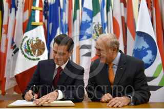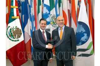 PARÍS, FRANCIA, 11 DE DICIEMBRE DE 2017.- Durante su visita a la Organización para la Cooperación y el Desarrollo Económicos (OCDE), el Presidente Enrique Peña Nieto firmó el Libro de Visitantes Distinguidos, en presencia del Secretario General de la Organización, José Ángel Gurría. FOTO: PRESIDENCIA /CUARTOSCURO