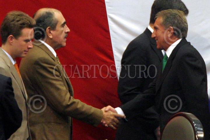 MEXICO, D.F. 23 NOVIEMBRE 2004.- El diputados panista Gustavo Madero (Izq)) ,dialoga con los legisladores perredistas Salvador Martínez de la Roca, Alfonso Ramírez Cuellar dialogan durante la sesión en San Lázaro. FOTO: Sandra Perdomo/CUARTOSCURO.COM