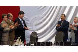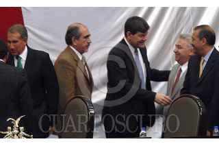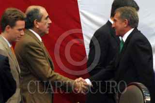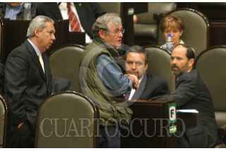MEXICO, D.F. 23 NOVIEMBRE 2004.- El diputados panista Gustavo Madero (Izq)) ,dialoga con los legisladores perredistas Salvador Martínez de la Roca, Alfonso Ramírez Cuellar dialogan durante la sesión en San Lázaro. FOTO: Sandra Perdomo/CUARTOSCURO.COM