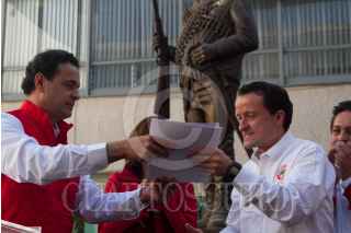 CIUDAD DE MÉXICO, 12DICIEMBRE2017.- Mikel Arriola acudió a la sede de la Confederación Nacional Campesina (CNC) del PRI a pedir su repaldo para su precandidatura en la búsqueda de la jefatura de gobierno de la Ciudad de México, lo acompaño el líder cenecista Ismael Hernández Deras. FOTO: MOISÉS PABLO /CUARTOSCURO.COM