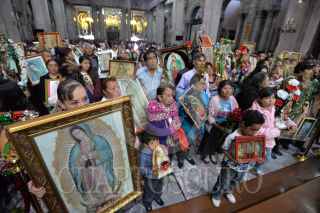 TOLUCA, ESTADO DE MÉXICO, 12DICIEMBRE2017.- Fieles católicos acudieron a la Catedral de Toluca a celebrar el Dia de la Virgen de Guadalupe, escucharon misa y bendijeron sus imágenes de todos tamaños. FOTO: ARTEMIO GUERRA BAZ/CUARTOSCURO.COM