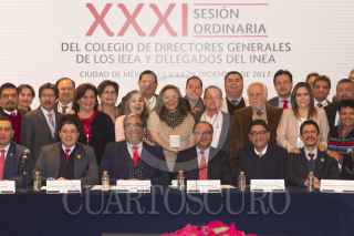 CIUDAD DE MÉXICO, 13DICIEMBRE2017.- Héctor Mauricio López Velázquez, director del INEA; Otto Granados Roldán, secretario de Educación Pública, y Sergio Cárdenas Denham, director general del Centro de Cooperación Regional para la Educación de Adultos en América Latina y el Caribe (CREFAL), durante la 31 Sesión Ordinaria del Colegio de Directores Generales de los IEEA y delegados del INEA. FOTO: MOISÉS PABLO /CUARTOSCURO.COM