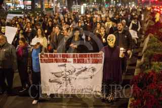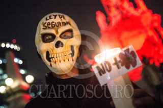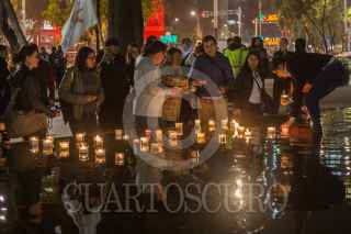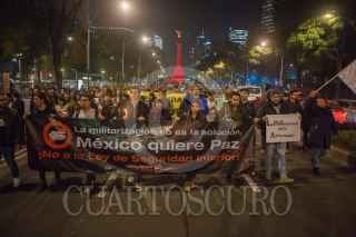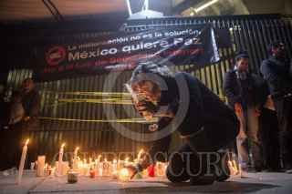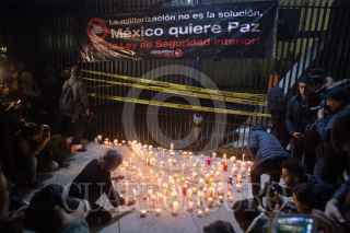 CIUDAD DE MÉXICO, 13DICIEMBRE2017.- Miembros de la sociedad civil acompañados por el actor Diego Luna, marcharon con veladoras del Ángel de la Independencia al Senado, donde lo clausuraron con cintas amarillas de forma simbólica, esto para protestar contra la Ley de Seguridad Interior. FOTO: TERCERO DÍAZ /CUARTOSCURO.COM