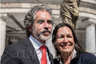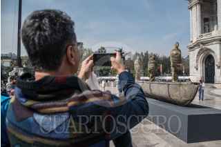 CIUDAD DE MÉXICO, 14DICIEMBRE2017.- Jorge Marin, pintor y escultor mexicano, inauguró esta tarde su obra monumental de bronce "El ruido generado por el choque de los cuerpos" en la explanada del Palacio de Bellas Artes. De acuerdo al autor, la obra resalta el viaje, la metamorfosis, transformación y el renacimiento del individuo y la sociedad. Su exhibición se mantendra hasta el 18 de marzo de 2018. FOTO: MARIO JASSO /CUARTOSCURO.COM