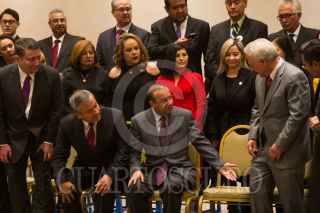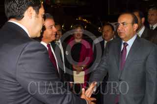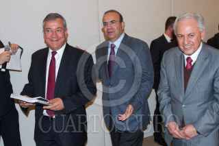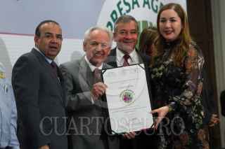 CIUDAD DE MÉXICO, 14DICIEMBRE2017.- José Adán Ignacio Rubí Salazar, Subsecretario de Previsión Social de la STPS; Alfonso Navarrete Prida, secretario del Trabajo y Previsión Social, y Cruz López Aguilar, durante la entrega del distintivo "Empresa Agrícola Libre de Trabajo Infantil 2017”. En la imagen lo recibe "Viñedo Carmel, S.A. de C.V. Viñedo Carmel". FOTO: MOISÉS PABLO /CUARTOSCURO.COM