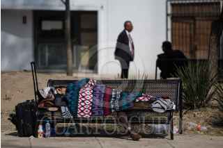 CIUDAD DE MÉXICO, 14DICIEMBRE2017.- Mujer en condición de calle duerme en una de las bancas de la Plaza Louis Pasteur. FOTO: ADOLFO VLADIMIR /CUARTOSCURO.COM