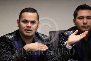 CIUDAD DE MÉXICO, 14DICIEMBRE2017.- La agrupación de música norteña, enigma Norteño, presentó su nuevo disco “De aquí soy” en las inmediaciones de Universal Music México. Durante la conferencia, el grupo destacó que ellos no le hacen corridos a nadie, sino que cuentan historias y lo que sucede en el país. FOTO: GALO CAÑAS /CUARTOSCURO.COM