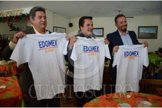 TOLUCA, ESTADO DE MÉXICO, 14DICIEMBRE2017.- Los dirigentes estatales del PAN, PRD y Movimiento Ciudadano, Víctor Hugo Sondón, Omar Ortega e Ignacio Samperio, respectivamente, sostuvieron una reunión en donde continúan afinando los detalles para la conformación del frente entre estas fuerzas políticas de cara a la eleccion de presidentes municipales y diputados locales en el Estado de México en el 2018. FOTO: ARTEMIO GUERRA BAZ /CUARTOSCURO.COM